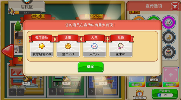 玩家可以外出宣传为餐厅做广告,打造餐厅的知名度,吸引更多客人。