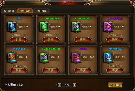 4、宗门商店:在宗门商店中可以通过使用宗门贡献换取各类稀有道具: