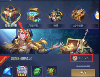 2、每日特惠:各种类型的礼包,英雄、加速卡、资源、装备等满足各种要求,购买后会升级下一档位同品种道具。配合当日活动来冲刺更好成绩最佳;