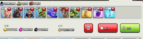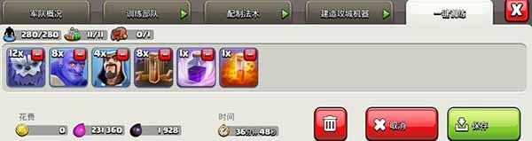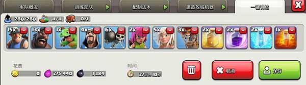 当你的大本营三级后(不知道2本可不可以...),玩家也可以通过练习模式来获得金币和圣水,这个可以在严重缺资源的时候帮到你。这个模式相当于一个进攻教程,所有的兵力都是系统出的,兵种怎么布置也会有提示,就是送给玩家“资源”的一个模式(只能获取一次资源),所以要利用好。