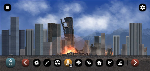 1、打开失控城市模拟器游戏后,在下方可以对城市选择行动,比如放烟花或者放炸弹,再次点击同一个行动就可以更改威力大小或者关闭了。