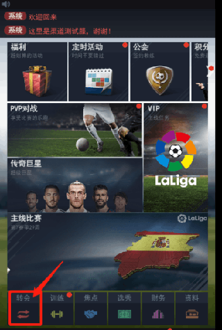 我们在进行完每周的比赛之后,点击左下角进入转会市场。