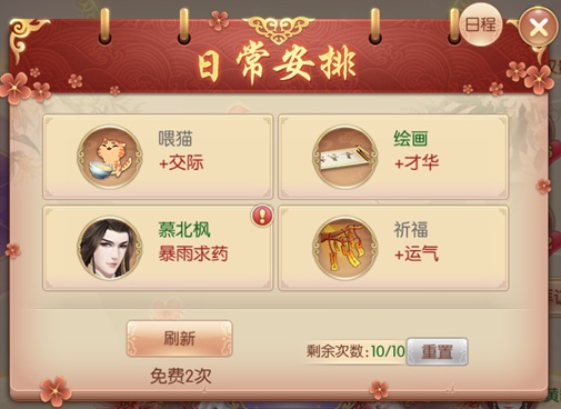①作为日常活动玩法之一的日常安排人物,小主可以每天安排自己在游戏中的行程;