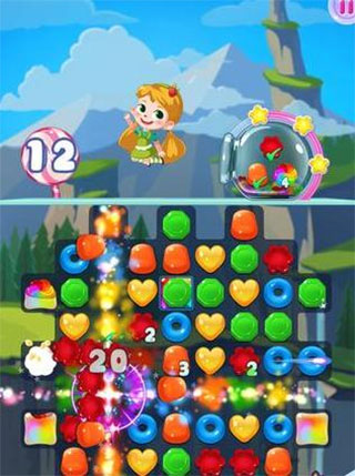 在消除玩法上抛弃传统的指尖滑来滑去的单纯玩法,融入了许多策略元素和军旗的规则,如果你只是考虑当前步奏,可能在规定的步奏之内,是很难消除够规定的糖果数。而当你划一步能顾及到后面一步或几步的话,就很有可能出现连消或大面积消除的激情场面,完成目标通过关卡,是很轻松的