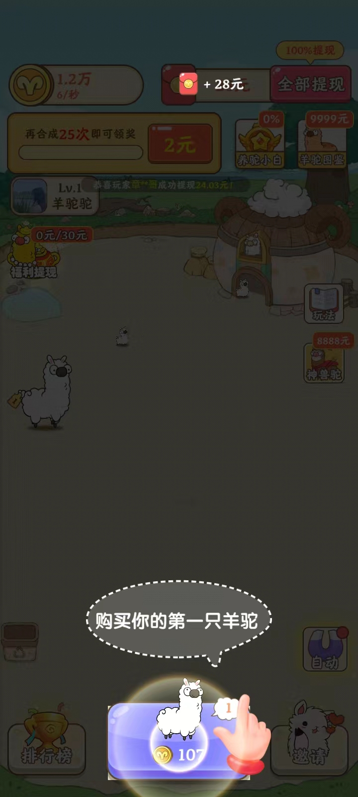 我是农场主是一款非常经典好玩的农场养成经营赚钱游戏,游戏整体采用动画卡通风格,精致可爱的画风,搭配上经典的玩法和悠闲地背景音乐,带给玩家不一样的游戏体验,在游戏中,玩家只需要不断地将相同的羊驼进行合成,合成后会获得一只更加高级的羊驼,同时红包版合成还会掉落红包奖励。农场上会不断的生产出普通羊驼和红包羊驼,普通羊驼兑换金币,红包羊驼兑换成红包,等级越高产出更多。生出的普通羊驼和红包羊驼越多,换的金币和红包也就越多。另外,玩家在我是农场主游戏中,可以拖动农场羊驼至左下角的回收桶就可以回收并获得金币,而招财羊驼回收还可以获得红包。当然,当玩家集齐五福驼,就可以召唤神兽驼,直接获得大额现金红包,欢迎大家来薅羊毛!赶紧下载试试吧!