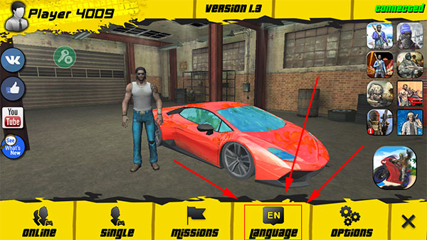 1、进入游戏后点击Language;