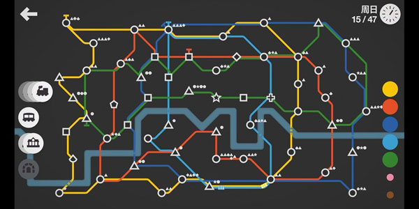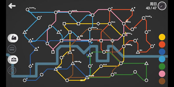车站不会拥堵,专注提升运输效率。这个模式与正常模式一样随时间推移会随机出现站点,会获得资源,但是车站永远不会拥堵,这就让玩家沉浸于提升效率,不断优化,设计出最完美的地铁线路,这很考验玩家规划与设计能力,同时还要考虑资源的合理利用。