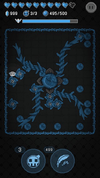1、曼陀罗花:房间为空,初始花在中央,花的行动2回合一循环,一回合行动3次。奇数回合不动,触须四处伸展并以花为圆心旋转,每次行动生出小细胞,小细胞随时间长成一个形似手里剑的路障,角色撞成型前的细胞boss扣血。偶数回合每次行动移动至角色刚刚所在位置并消除沿途的路障。(路障可用翅膀飞过去)