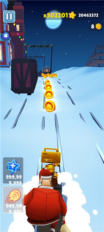 玩家可以通过滑动手指在屏幕上进行操作,左右滑动可以改变角色的方向,上滑可以跳跃,下滑可以滑行。在游戏中,玩家需要时刻注意地铁轨道上的各种障碍物,如隧道、栏杆、车厢等,以及追赶者的攻击。同时,玩家还可以通过收集金币来获得额外的分数和道具,如磁铁、飞鞋、护盾等,以助力游戏进程。
