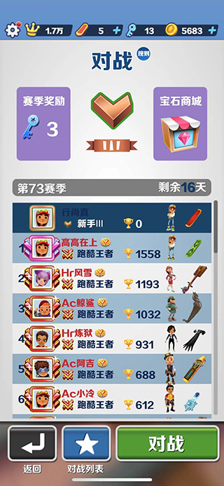 第一种是硬跑十五次第一,不过这是很难的。我相信大多数人都做不到,随着连胜次数的增加,系统会给你匹配越来越强的对手,迟早会顶住不的