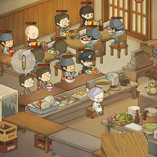 通过制作料理卖给客人赚钱,不断的研发新料理,购买新设备,以及触发老奶奶与客人、老爷爷之间故事。
