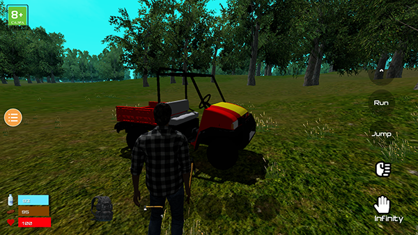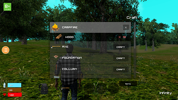 5、砍树可以获取木头可以生火,建房子等功能,要注意角色左下角健康状态及时补充。