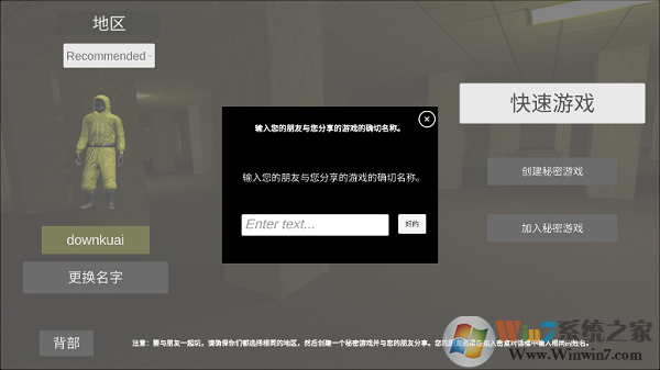 8、选择相同地图、地区后,输入相同的房间名称,