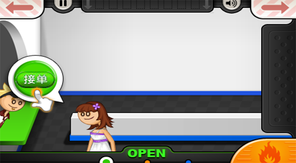1、首先在当快站安装好中文版本的老爹汉堡店,然后进入到游戏当中第一天开业见到客人就接单。