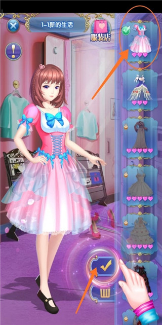 5、选中一套衣服,根据手势换装之后,点击下方的确认键;