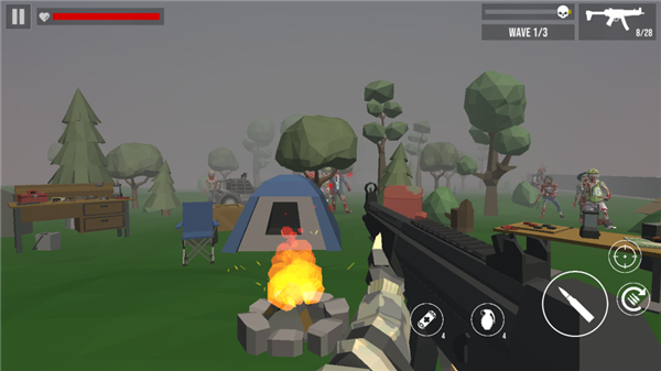 4、当僵尸逼近时,玩家需要左右移动枪支,点击子弹即可开启射击,需要注意的是,如果玩家对准僵尸头部的话可以一枪打死,射击到其他部位的话,需要多打几枪;
