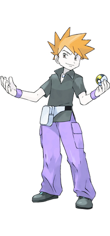 是主角在火叶版中的劲敌。在旅程中不断的与主角相遇和对战来测试自己的实力。他选择的初学者神奇宝贝在属性上克制主角的初学者神奇宝贝。