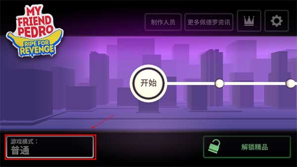 1、打开我的朋友佩德罗正版,首先我们选择游戏模式,这里以普通模式为例,点击开始进入游戏;