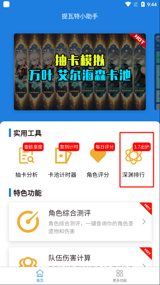 ①首先打开提瓦特小助手,在更多功能模块点击队伍使用率排行;