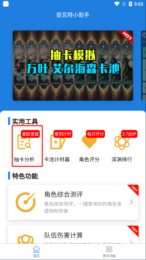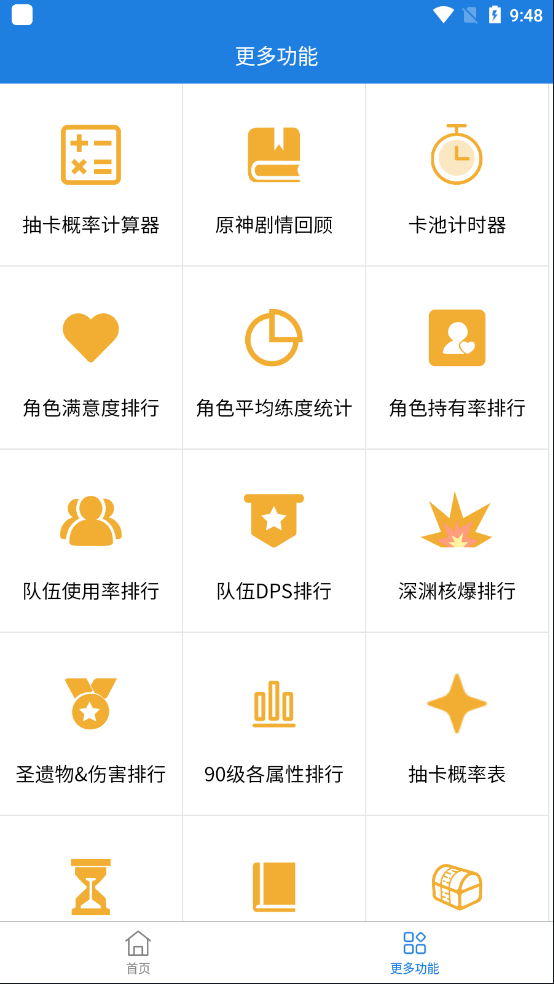①点击更多功能,可以看见第一个【抽卡概率计算器】