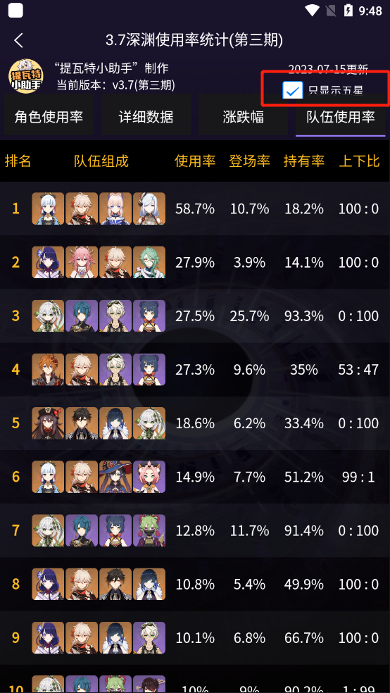 ③还可以只看五星角色等等。