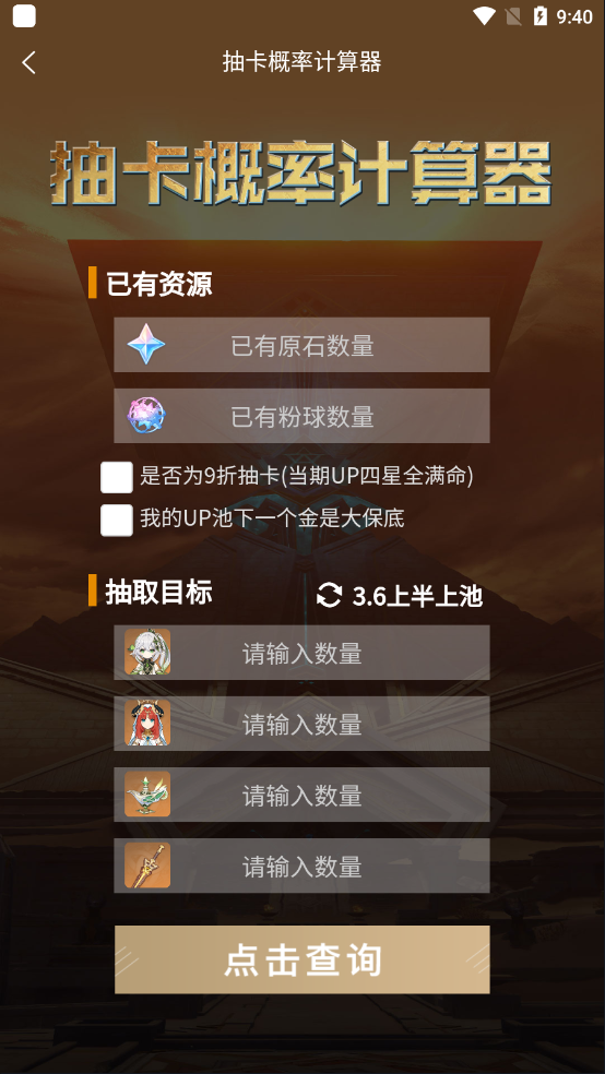 ②填写已有原石和粉球数量等,信息填写完整后点击查询