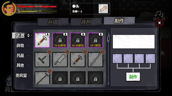 2、在每层的探索过程中,玩家需要收集各种各样的物资,主要是武器、食物、药品、材料;