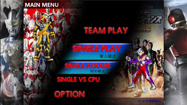 奥特曼vs假面骑士是一款根据死神vs火影魔改而来的一款动作类格斗游戏,该游戏玩法和原版相同,玩家可以在这款游戏中选择自己喜欢的奥特战士或者假面骑士。还记得小时候第一盘光碟就买到盗版假面骑士空我的碟片,那时候碟片上还是写的古加奥特曼。现在在这款游戏中也能够和奥特曼来一场战斗了。改款游戏中拥有大量经典角色如甲斗王、杰克奥特曼、迪迦奥特曼、赛罗奥特曼等等甚至是逢魔时王都有。游戏中还有多种模式包含对战、故事模式、训练模式、单人模式、多人模式等等,不同的模式拥有不同的玩法,感兴趣的朋友赶紧下载试试吧!