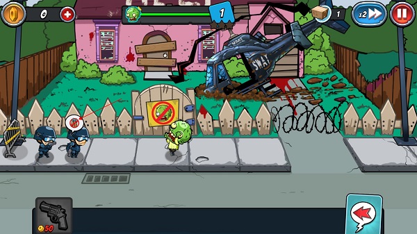 《警察大战僵尸2(SWAT and Zombies Season 2)》是一款僵尸塔防战争游戏,特警大战僵尸2无限星金币版有着各种不同种类的僵尸类型,玩家可以自由挑选特警,布置出自己的专属应对僵尸阵容。游戏不仅有着富有挑战性的战斗场面,更有简单易控制的用户界面,它不仅画面清新明亮,还有着令人捧腹的故事剧情,快来为人类的生存环境提供助力吧!一款策略塔防类的手机游戏,主要围绕特警对抗僵尸展开。游戏采用卡通版的画风精心绘制刻画,呈现出多样的画面场景,还提供大量不同类型的武器等你收集,有各种僵尸需要你来征服,玩法模式多样又精彩,给人无限的战斗乐趣。