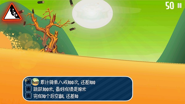 每局游戏开始系统都会给出要完成的若干小任务,通常都是些完成高难度动作、收集奖励等等并不复杂的任务,完成后系统会给出各种奖励机制,步步解锁下去的话,游戏就会更紧张有趣。