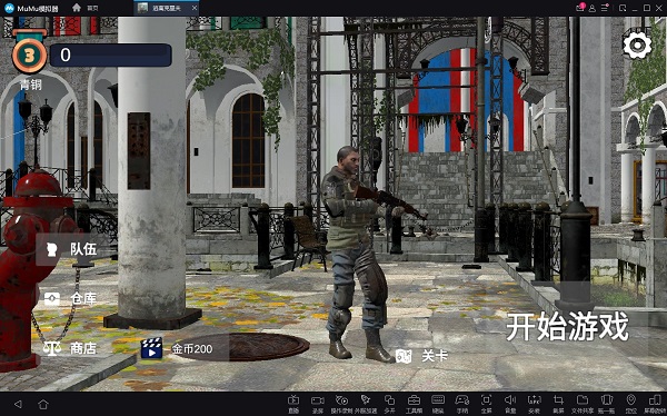 首先游戏界面的设计比较简约,在界面左上方是玩家的等级,下面则是队伍(暂未开放)、仓库和商店,仓库可以储存玩家在游戏里收集到的物资,商店则可以同来购买子弹、医疗包以及武器和装备等。了解了上述的界面功能后,紧接着点击“开始游戏”!