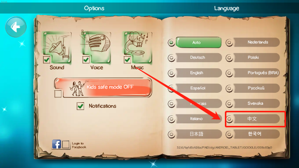初次进入游戏默认语言显示为英文,我们需要点击“optons”设置进行切换