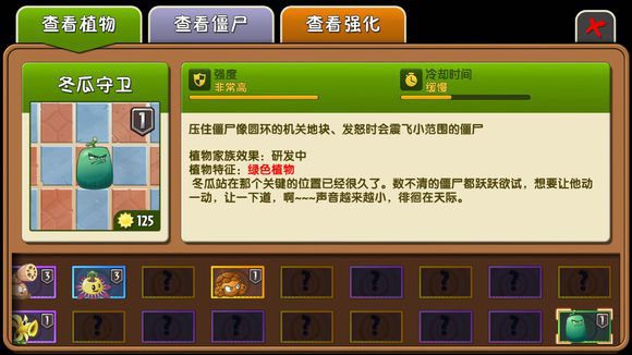 皮糙肉厚-冬瓜守卫,超高血量,优质肉盾,惹恼了冬瓜守卫,它会起跳震杀僵尸。