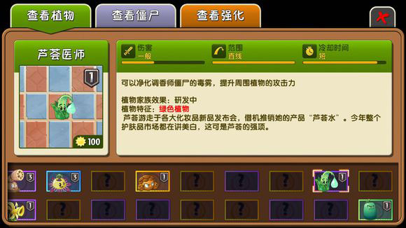 强力医护人员-芦荟,还在苦恼如何对付毒害植物的调香师僵尸吗?不要慌,芦荟种一种,为植物来解毒吧。