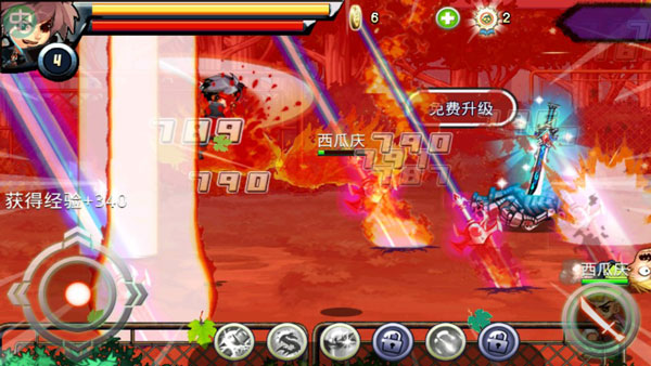 1、侧边滚动操作,方便控制,让玩家能快速上手体验。2、快速挥砍以通过敌人群,游戏情节活力十足。