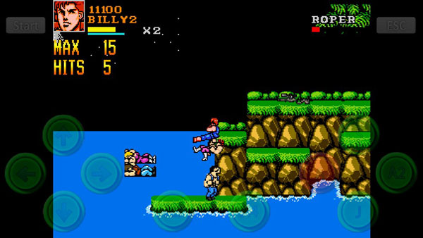 另外,有些位置需要用【↓↑+跳】大跳飞踢(用来跳过更高的台阶),特别是第一关中的河道位置就是需要这样才能跳上来。