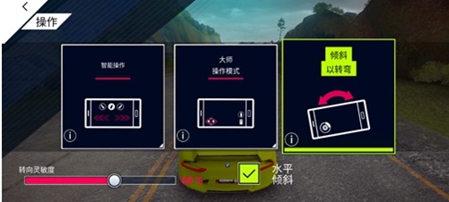 3.重力感应的操作会更真实一些,操控起来给也更有代入感,不过在使用重力感应控制的时候,要注意调整好转向灵敏度,试验了几次,感觉调整到60%是比较合适的,当然大家也可以根据自己的习惯来调整。
