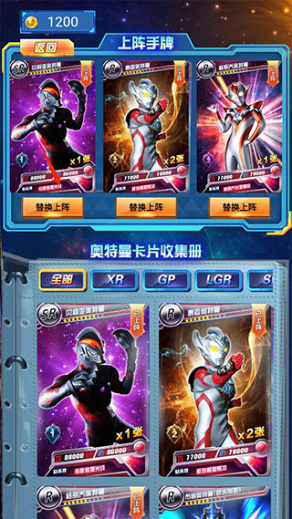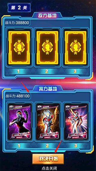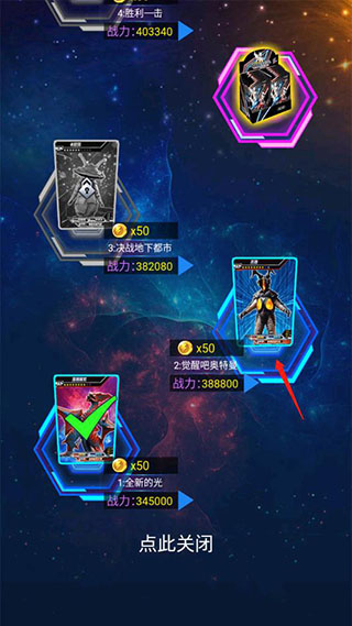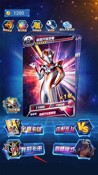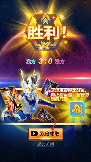 PS:可免观看视频领取每日金币、自动切换卡册内战斗力最高的奥特曼阵容以及胜利双倍奖励。