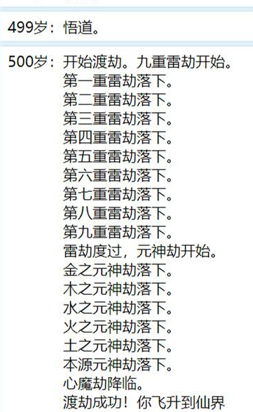 5、最后就能够达到500岁成功渡过雷劫成仙了。