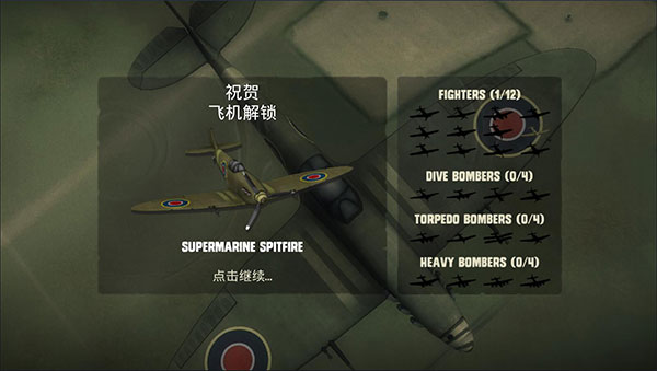 6、然后就会出现奖励界面,新手教程结束,正式解锁了我们的第一架飞机,右侧的阴影代表了游戏中未解锁的飞机图鉴。