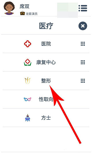 3、接着在“医疗”列表中找到“整形”按钮并点击