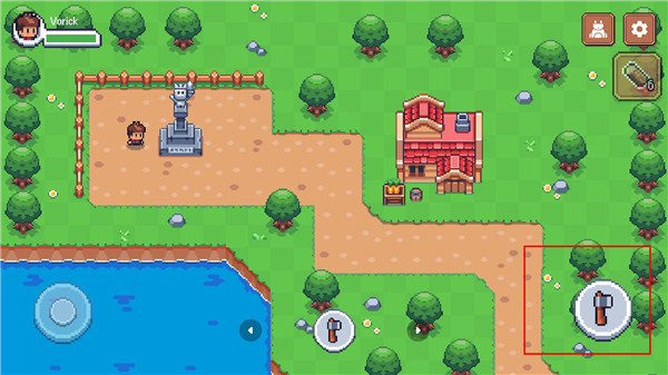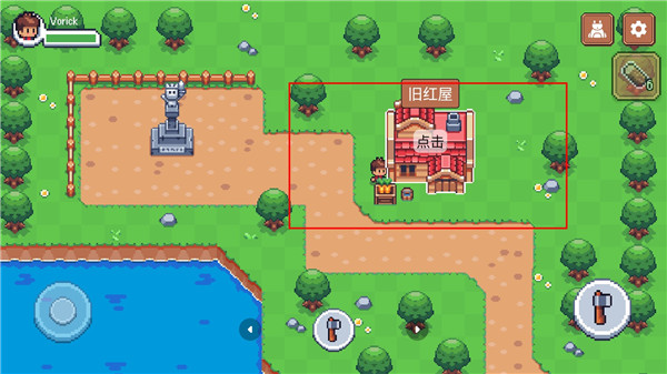 5、点击右下角的工具是斧头,你可以利用它来进行砍树,寻找木材。