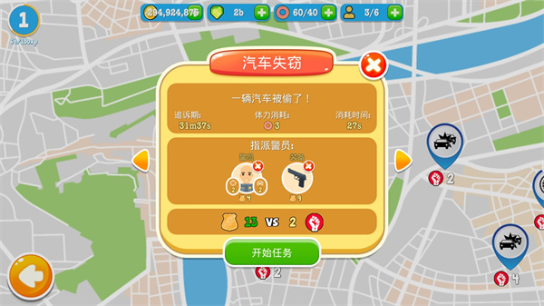 3、点击游戏的地图,在这里有着大量的案件需要玩家来完成,每完成一件也可以获得奖励。