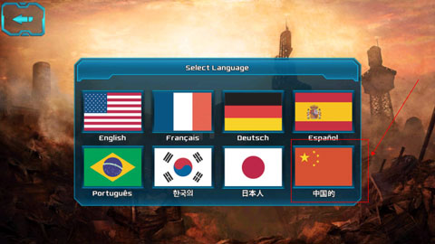 1、下载安装游戏,首次进入游戏后,请打开选项“Option”,在点击“Language”语言栏,如下图箭头所示。