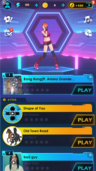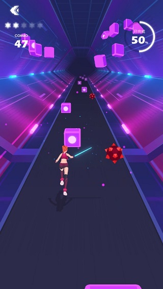 1、选择一首你喜欢的歌曲,点击开始2、伴随着动感的音乐,长按屏幕左右移动游戏中的小人,