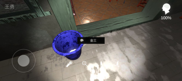 从左边数,第二个防撞锥可以动,人物走过去踢一下。