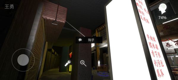 人物线索位置:位于那个发亮白色的菜名灯柱的旁边。