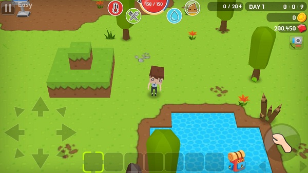 最开始我们没有武器,只能徒手获取,直接对准树木、石头、煤矿等,按住屏幕右下角的“攻击”按钮即可,大概十来次后就能击碎它们,获得材料了。
