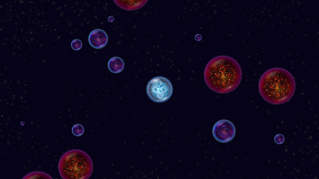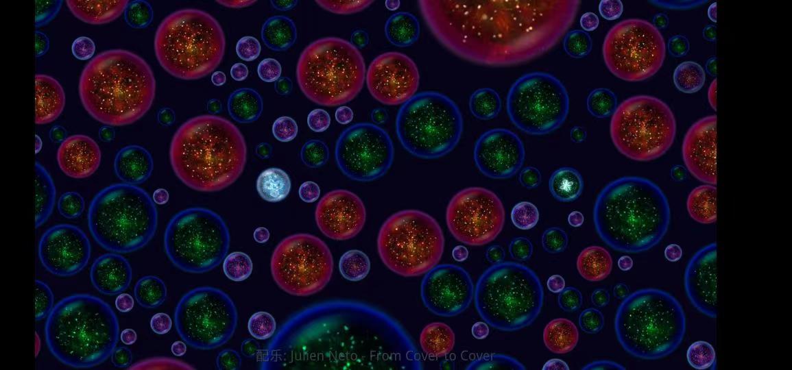 2、进入达尔文描述的星系尘埃世界。为了生存,需要吸收较小有机体后变大——但要小心更大的捕食者。
