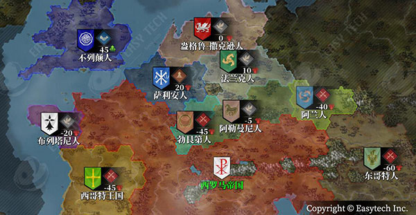 同时,玩家除了要处理与各国之间的关系之外,也要注意自己国家的人口比例,较高的人口比例不但会影响本国的资源产出,而且会减少与接壤势力之间的外交值。